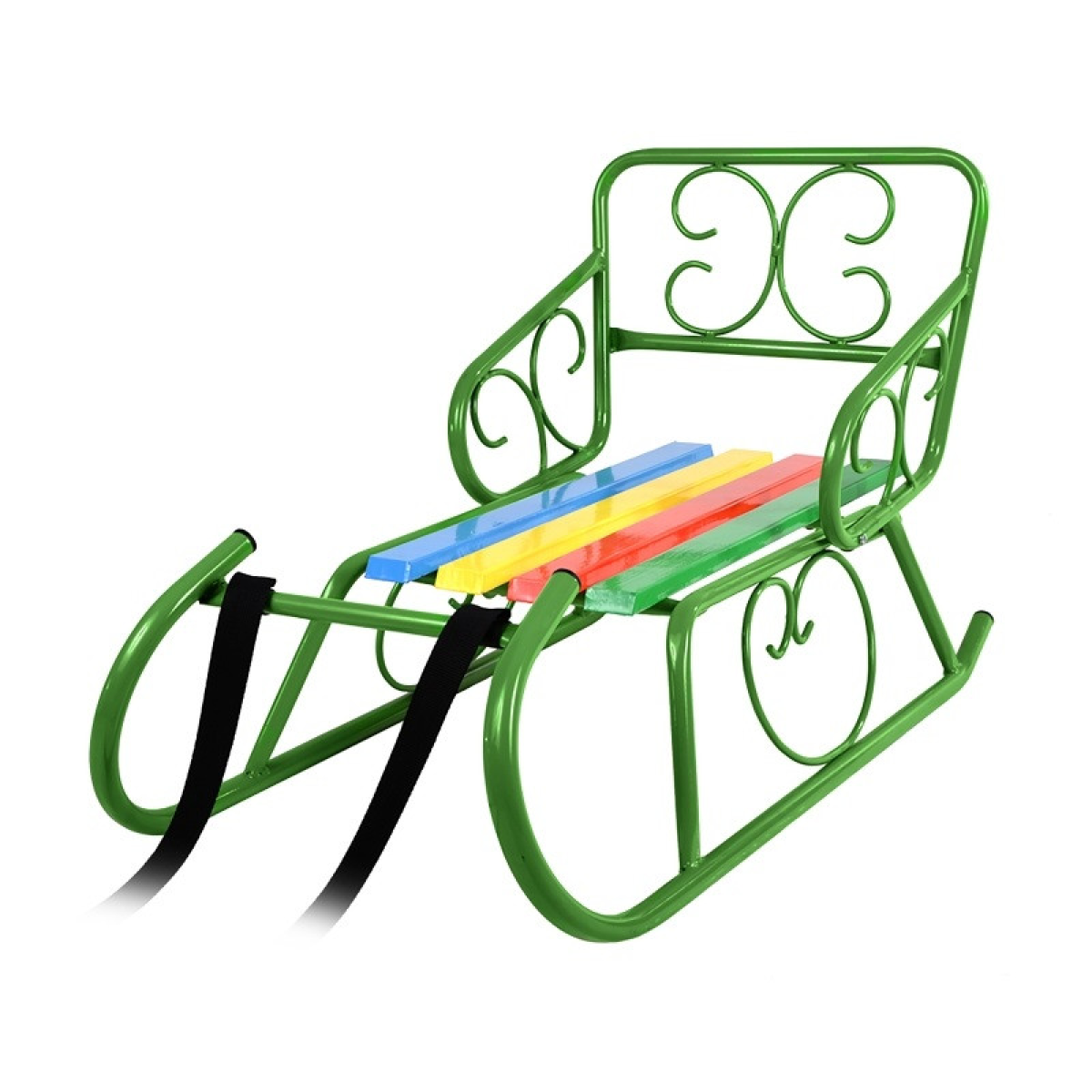 Санки Смерека виготовлені зі сталевої круглої труби, обладнані спинкою. Сидіння виготовлене з натурального дерева. Додатково можна придбати ручку-штовхач.