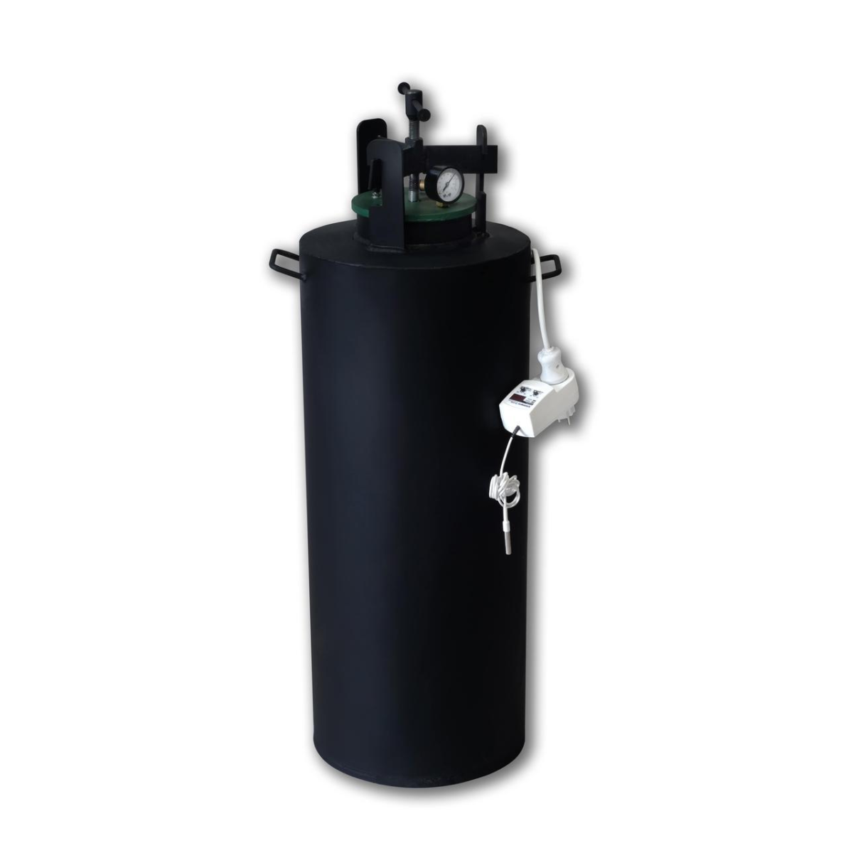 Автоклав виготовлений із чорного металу (просте залізо). Більш бюджетний варіант, який не поступається якістю автоклавам із неіржавкої сталі!