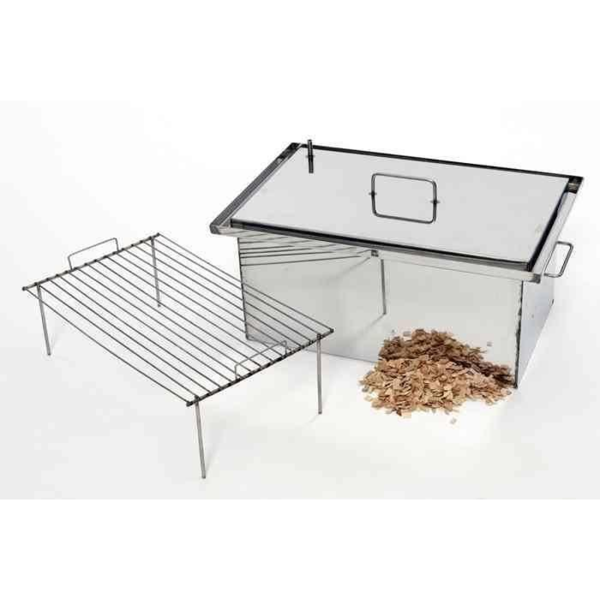 Всі елементи виготовлені з харчової неіржавкої сталі, яку легко чистити та мити, вона не схильна до корозії. До комплекту входить паковання вільхової тріски, тому відразу після купівлі можна випробувати коптильню для риби та м“яса в роботі вдома або на природі.