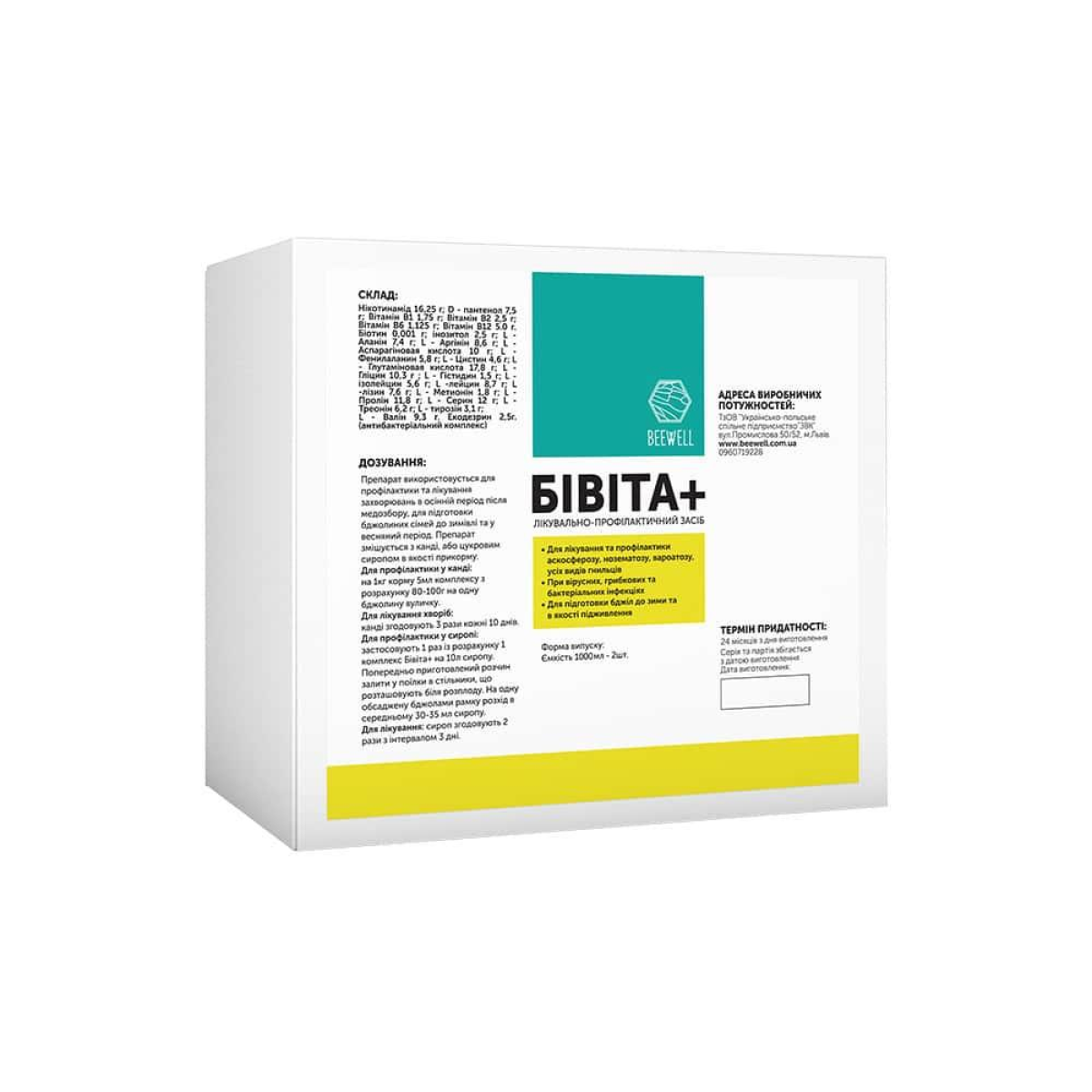 Для профілактики у сиропі:застосовують один раз із розрахунку 1 комплекс Бівіта+ на 10 л сиропу. Попередньо приготовлений розчин залити у поїлки в стільники, що розташовують біля розплоду. На одну обсаджену бджолами рамку розхід в середньому 30-35 мл сиропу.
