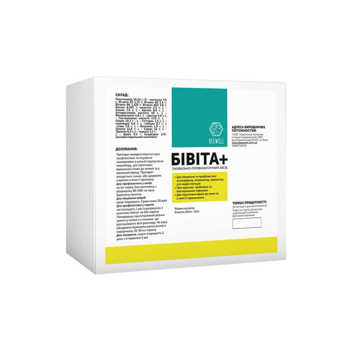 Для профілактики в сиропі: застосовують один раз із розрахунку 1 комплекс Бівіта+ на 10 л сиропу. Попередньо приготований розчин залити в поїлки в стільники, розпліднюють. На одну обсаджену бджолами рамку витрата в середньому 30-35 мл сиропу.