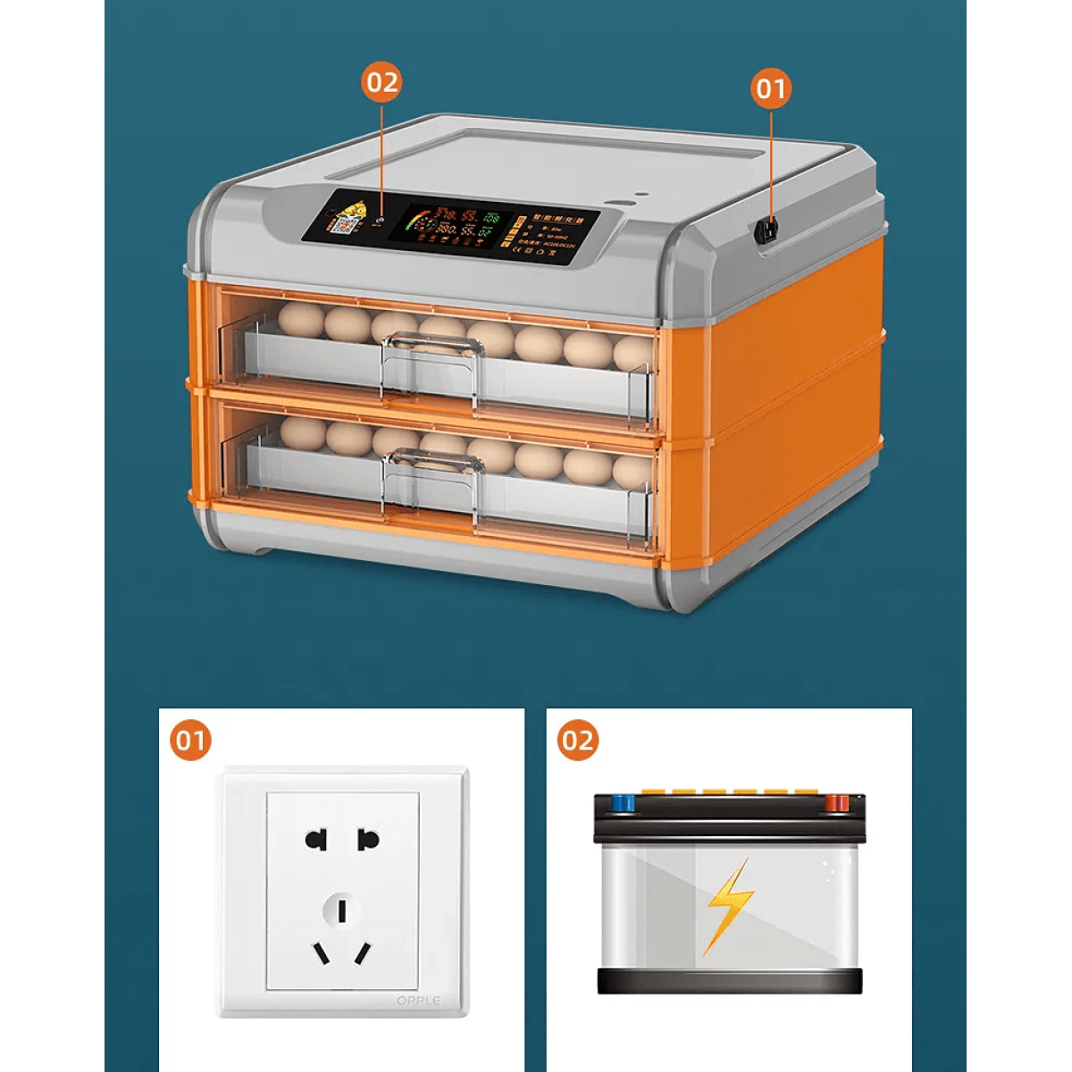 Обновленный и усовершенствованный автоматический инкубатор с двумя источниками питания и овоскопом. Обеспечивает автоматизацию процессов инкубации, обладает эргономичной панелью управления. Лоток с яйцами выдвигается вперед, что обеспечивает простой доступ, без подъема крышки.