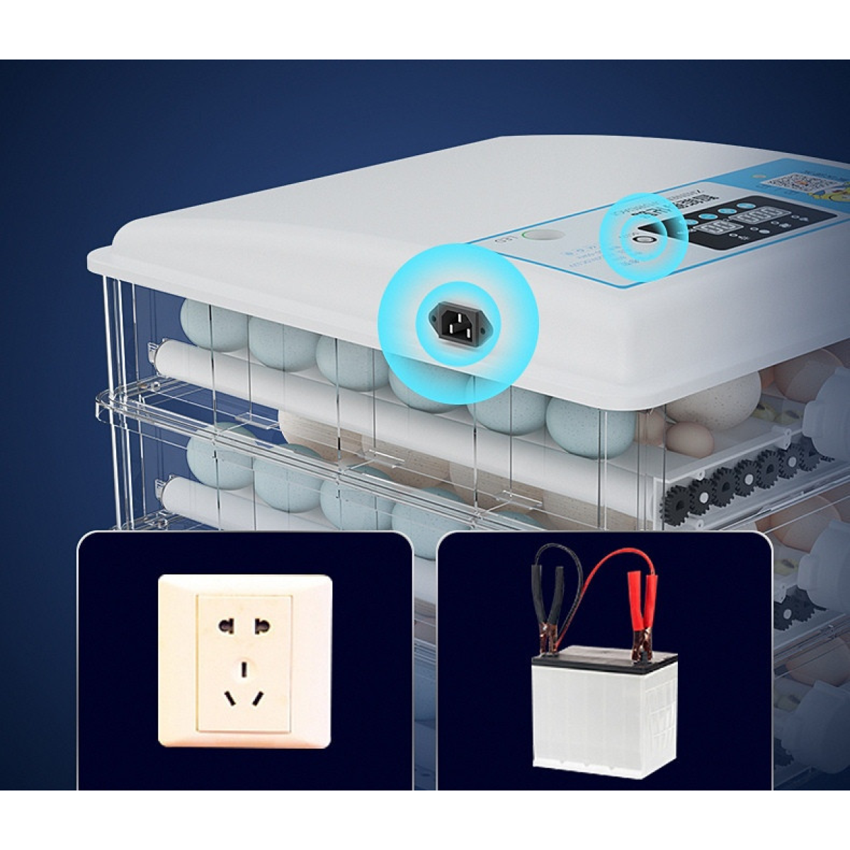 В инкубаторе установлен тепловой шнур (тэн) и вентилятор, который раздувает теплый воздух по всему корпусу инкубатора. Таким образом, все яйца будут достаточно обогреты, а через настройки инкубатора Вы можете выставить нужную Вам температуру.