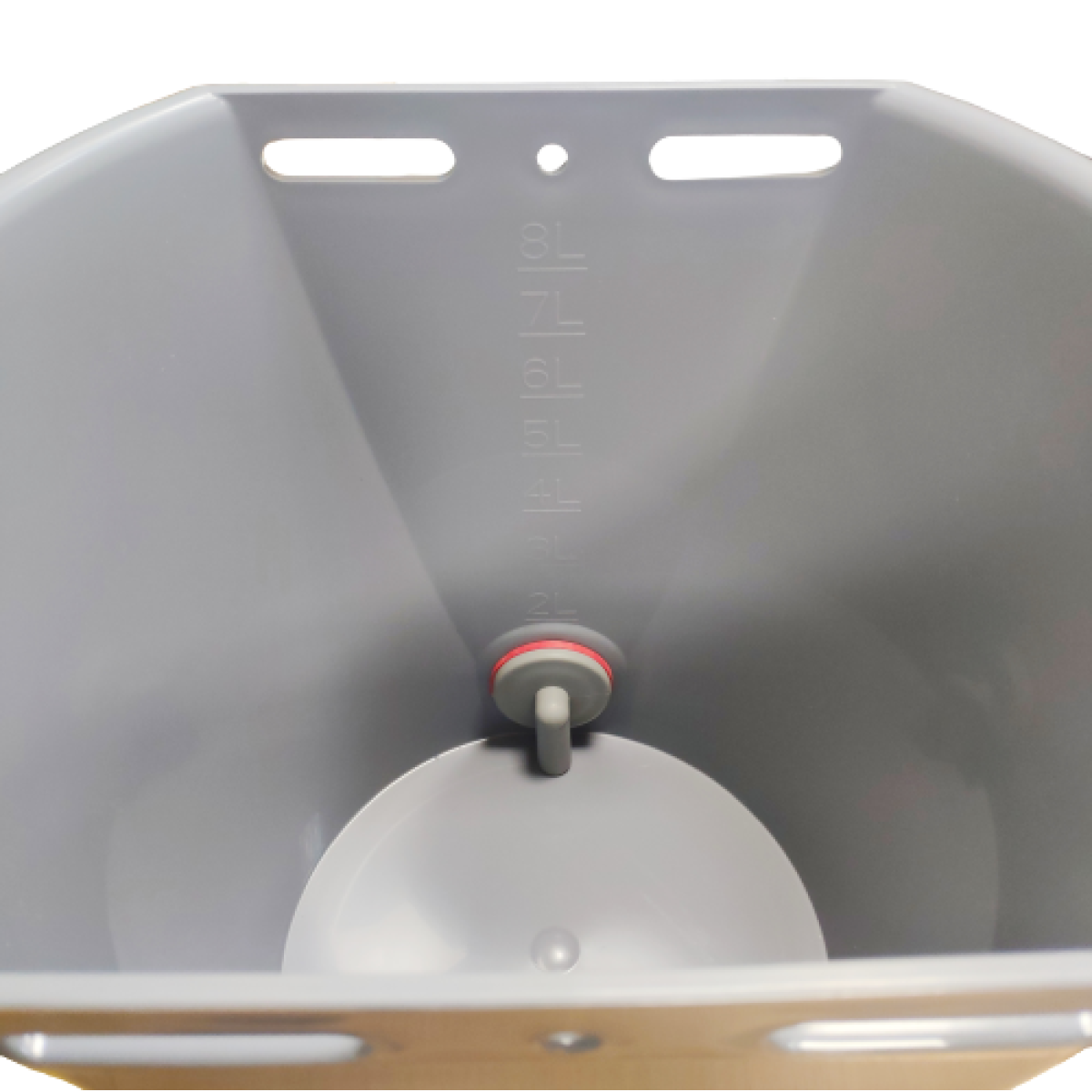 Усередині відра нанесене градуювання, що дає змогу швидко та точно відміряти порцію молока для молочного теляти.