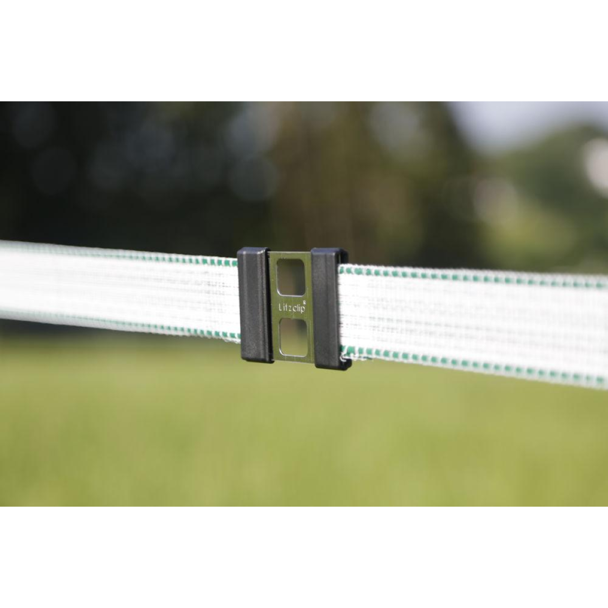 З“єднувач Litzclip для стрічки елетропастка 40 мм просте з“єднання 2-х кінців стрічок без інструментів швидкий ремонт поривів електрозаглушень спеціальні перфоровані прямокутні отвори, простота введення та надійна фіксація стрічки безперервна електрифікація простота в обігу Litzclip® від AKO — запатентована якісна продукція “Made in Germany“ Матеріал: високоякісна сталь. Виробництво: АКО Німеччина.