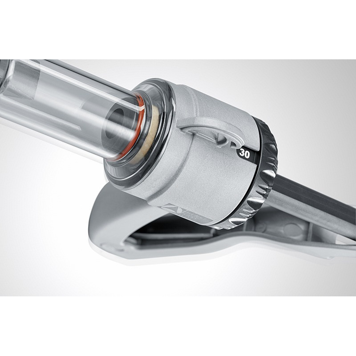 Дозування плавно регулюється (похибка <1%) біля ручки. Ручка з корпусом виготовлені зі сплаву литого алюмінію, який є стійким до вигину при збільшеному навантаженні. Розпилювальна насадка виготовлена з медичного протиударного пластика, стійкого до хімічних речовин. Пероральна трубка виготовлена з медичної хромованої сталі. Циліндр виготовлений з медичного, стійкого до пошкоджень і хімічних засобів пластика.