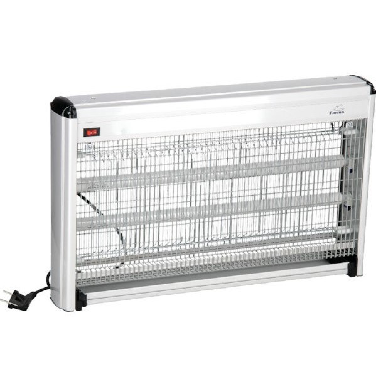 Знищувачі літаючих комах (інсектицидна лампа) Farma 30W Країна походження: Нідерланди. Потужність електричної решітки: 2200-2300 V. Розміри упаковки (довжина/ висота/ товщина): 500 мм/ 340 мм/ 120 мм. Розміри мухоловки: 490 мм/320 мм./100 мм. Застосовується для активної боротьби з літаючими комахами (комарі, мухи, оси, оводи, міль та ін) в побутових і промислових приміщеннях, а так само на вулиці. Ефективний радіус дії даного приладу залежить від типу приміщення і концентрації комах на 1 кв. м. Принцип дії електричного знищувача комах полягає в приманивании літаючих шкідників с помощью ультрафиолетовых ламп установленых внутри устройства и поражении их электрическим током высокого напряжения 2200-2300 Вольт, который подается с помощью металлических электродов в виде сетки установленых по периметру лампы. При поражении насекомых электрическим током высокого напряжения роздается характерный треск (щелчки), после чего они обездвиженные падают в специальный поддон (пластиковый лоток) расположеный в низу лампы. Лоток для сбора насекомых легко снимается и очищается от мертвых насекомых. Гарантия: 12 месяцев. При выставлении счета на оплату с 20% НДС акция не действует.